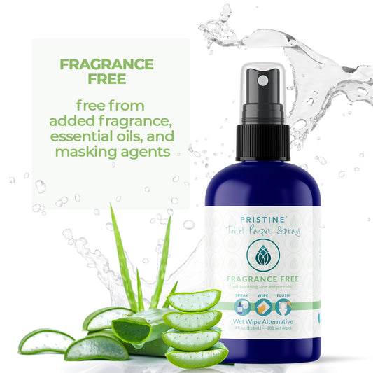 Pristine's Fragrance Free spray has no added fragrance, essential oil, or masking agents. You may detect a slight aroma of the natural ingredients themselves, which has been described as a clean, fresh scent, similar to other fragrance free products.